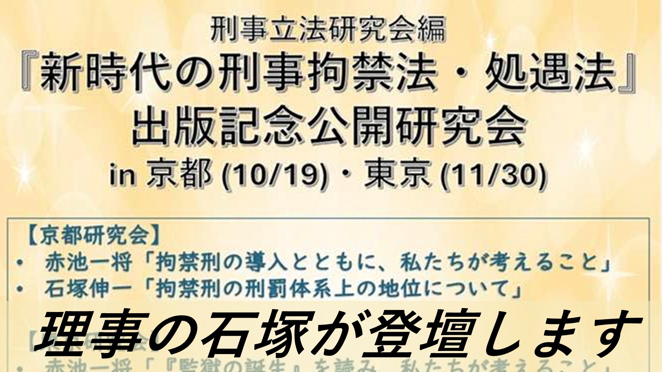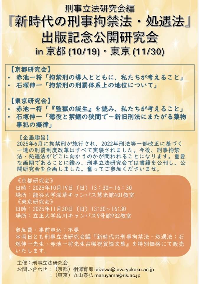 *両日とも刑事立法研究会編『新時代の刑事拘禁法・処遇法:石塚伸一先生・赤池一将先生古稀祝賀論文集』を特別価格にて販売いたします。