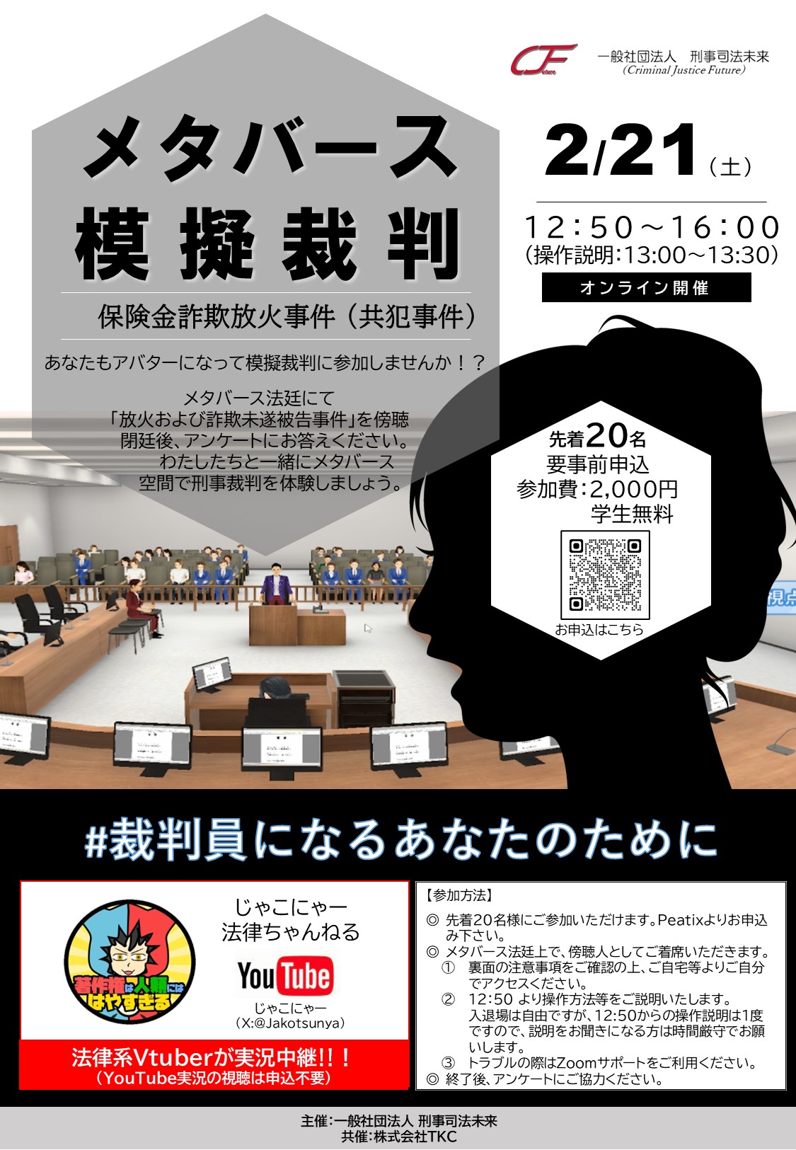 〔開催〕メタ・バース模擬裁判「保険金詐欺放火事件(共犯事件)」2/21