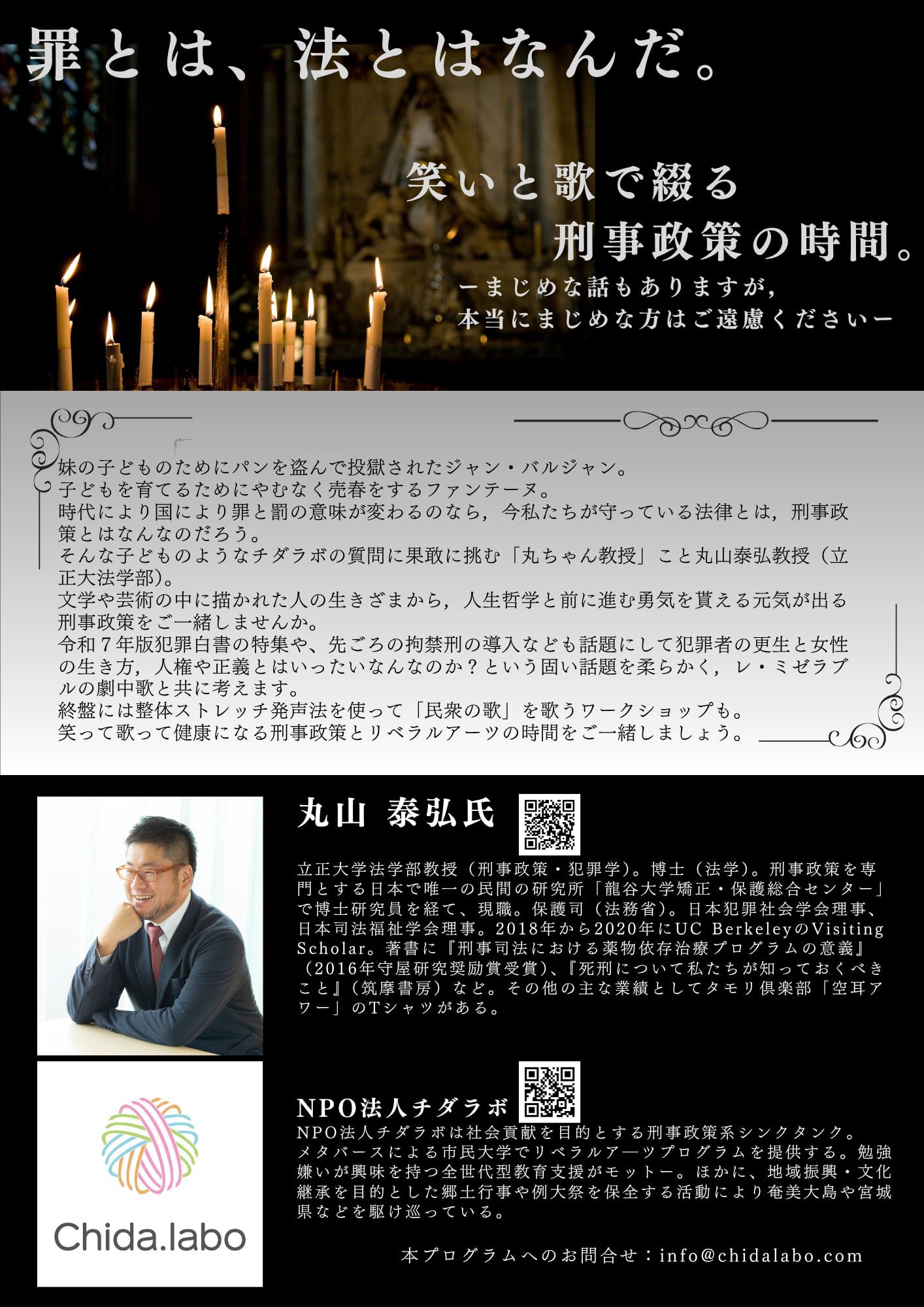 2026年5月9日(土)、なんと!昨年大好評だったイベント「小説より奇なる刑事政策:レ・ミゼラブルにみる更生とは」が再演となり、今回も当法人の丸山が出演いたします。